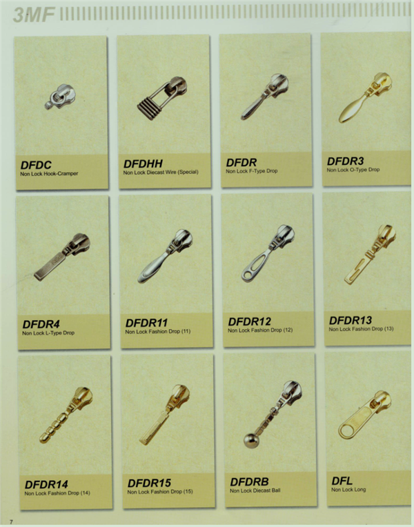 YKK樹脂牙拉鏈及拉頭、YKK金屬牙拉鏈及拉頭、YKK Y牙牛仔系列拉鏈等。